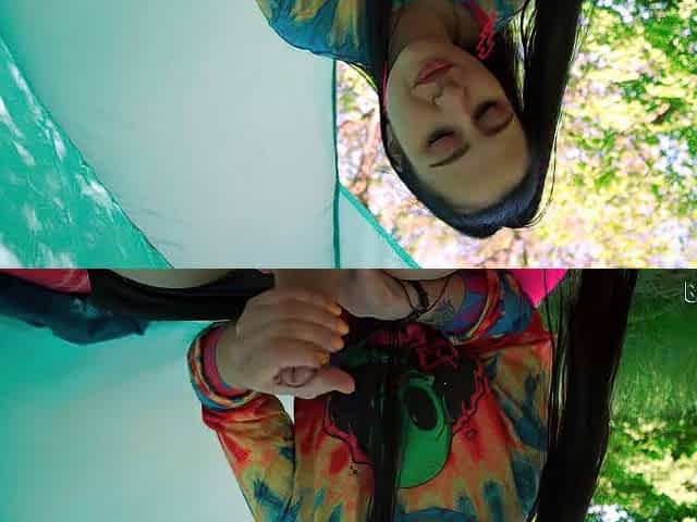 Brunette Hippie Jerks Me Off for Free in a Tent