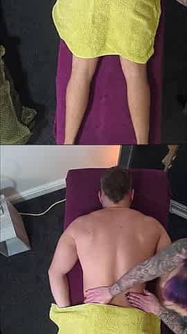CFNM masseuse amateur babe blows ands wanks oiled dick