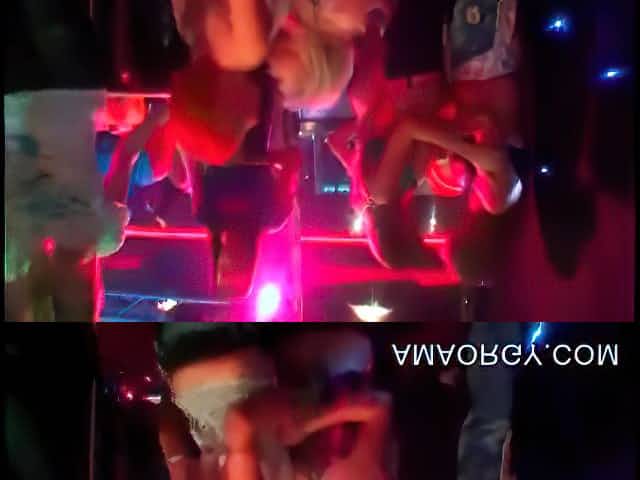 Amateur party girls suck stripper cock at the hot club
