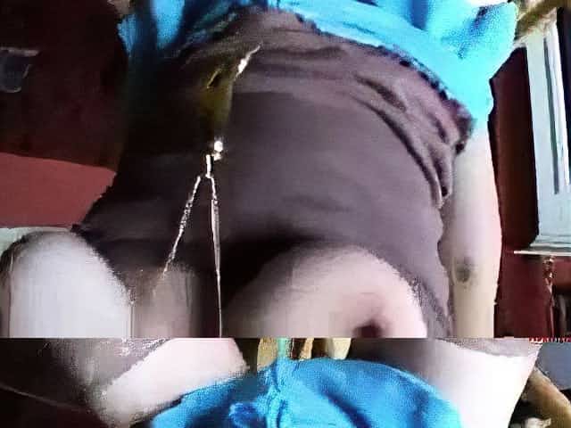 Filthy blonde pees all over her chair when she has an orgasm