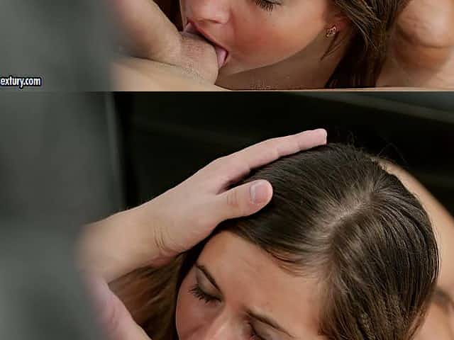 Hot college girl gives head to her young man on the chair