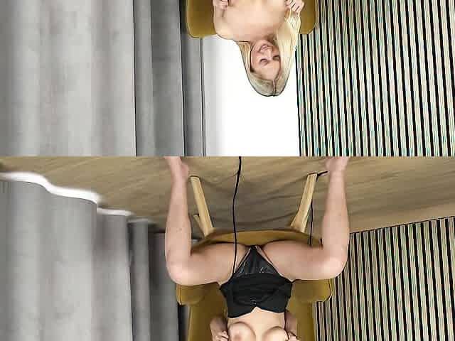 Lusty Blondie Masturbates Her Holes On The Oval Chair!