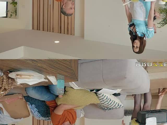 Maid Chanel Preston wearing stockings flashes her panties