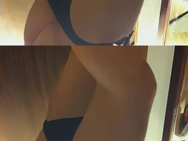 Girlfriend in changing room trying on the new lingerie