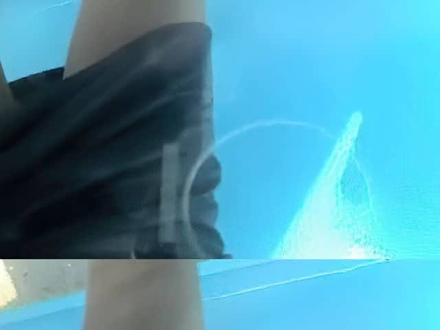 Petite teen on changing room spy cam trying on blue swimsuit