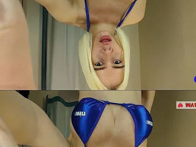 Peeping into public locker room, bottom view of soaked twat and large melons. Try on haul