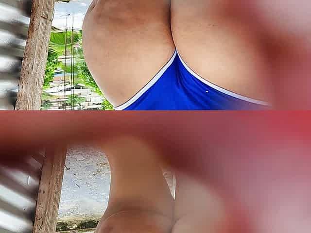 Changing room fem shakes bazookas as wearing panty