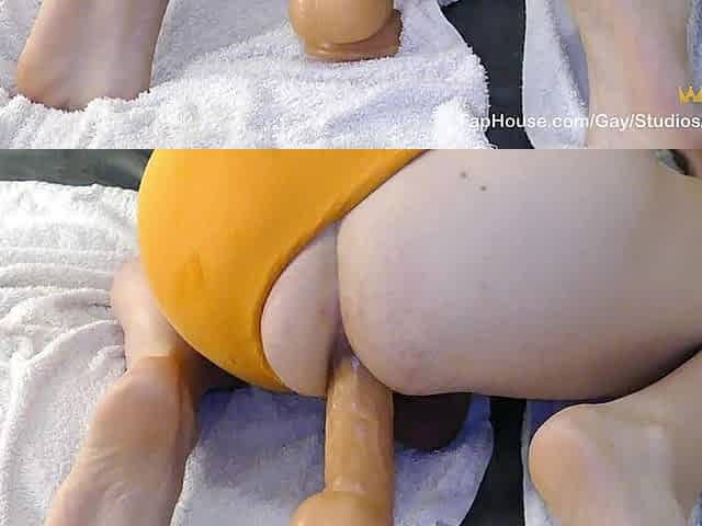 Anal dildo fucking for Mike locked in chastity