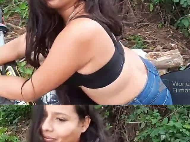 Exhibitionist twerking out in nature in constricted leggings and a bit of anal play