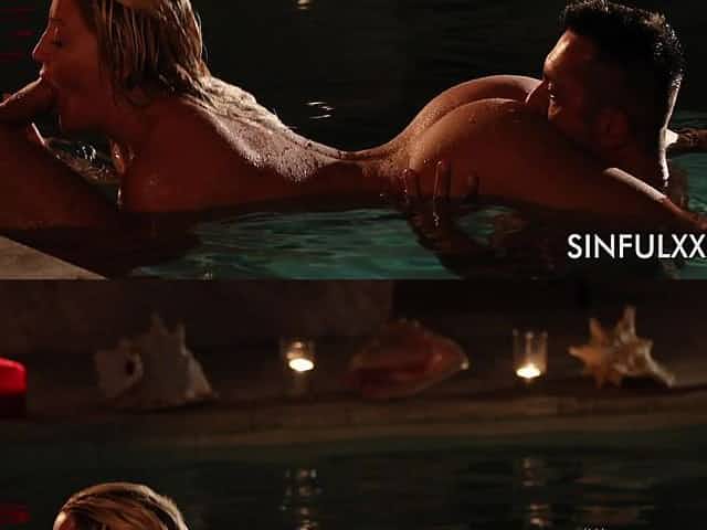 Stunner with perfectly shaped body Sienna Day is making love in the night pool