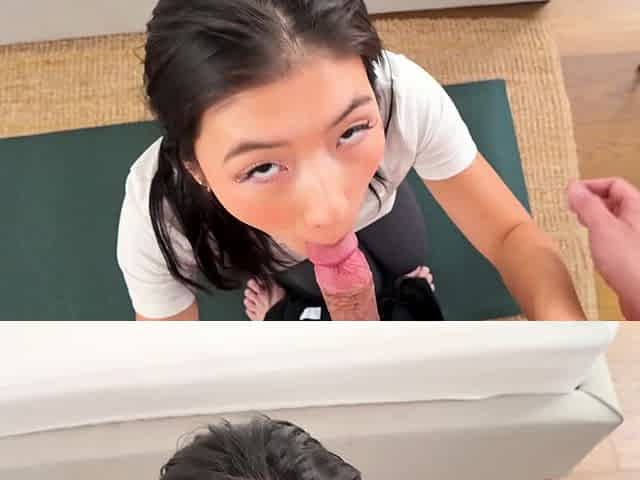 Adorable Chinese maid Cafe Sua gets a big facial in POV style