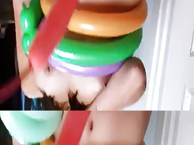 naked asian girl playing with toys