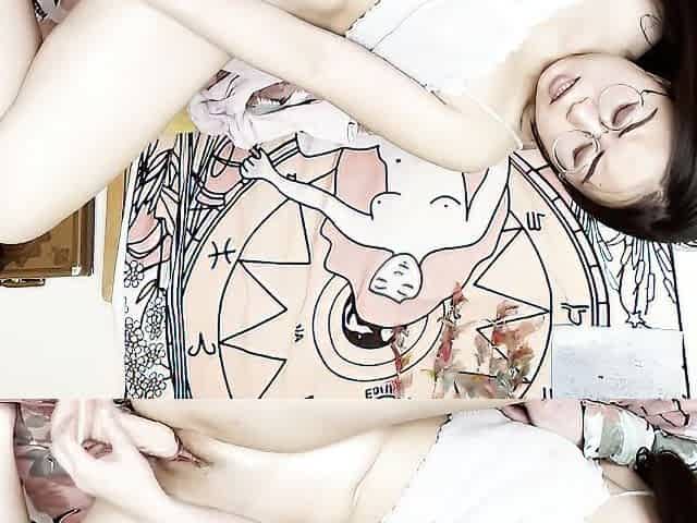Asian doll is drilling her cunt with a rubber toy