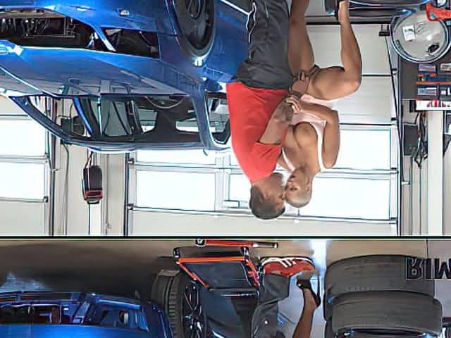 RIM4K. Busty hottie with bald hair worships mechanics ass in garage