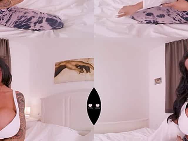 Buxom hottie Chloe Lamour pleasuring her boyfriend in bed