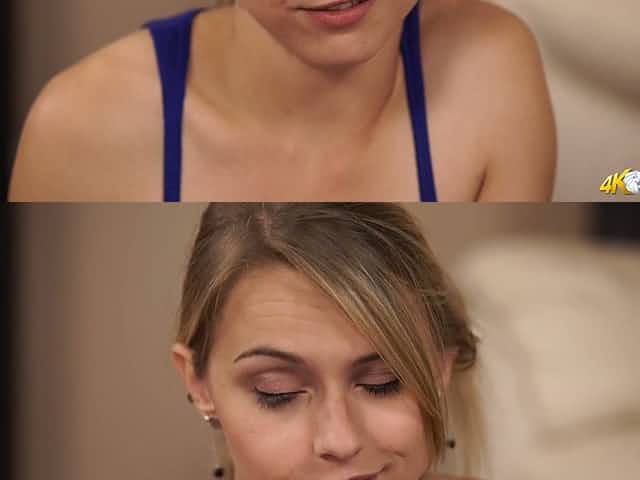Mice blonde Chloe Toy is playing with her panties while stud drills her tight cunt