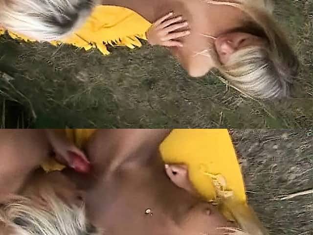 Christine stunning blonde girl toying pussy outdoor
