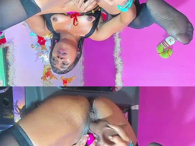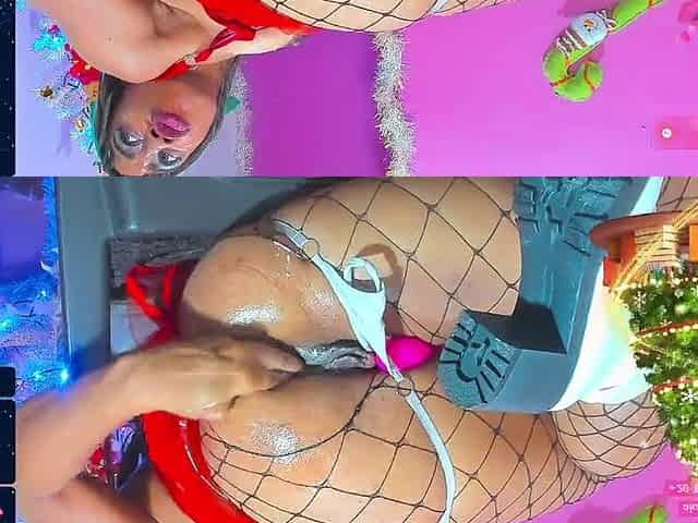 Christmas fun inside my pussy with Barbychocolat making me squirt all over
