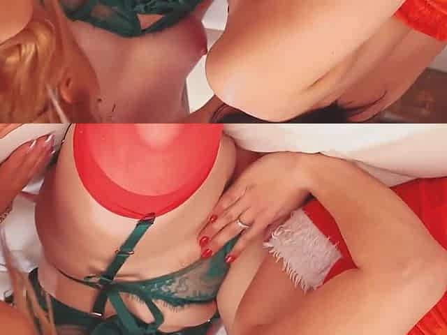 Mandy and Tabatha nude with ribbon and pussy Christmas Shoot