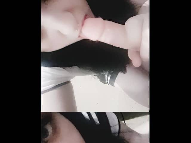 Up close Ebony sucking butt plug with asshole