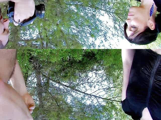 Bizarre wood branch anal screw in forest outdoors