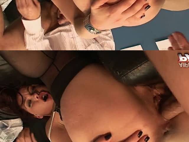 Chubby redhead gang banged during interview 4K