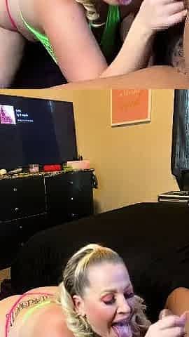 Chubby Blonde with big tits sucking black cock