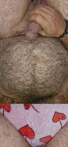 Fat shaggy bear strokes him and lets off thick load