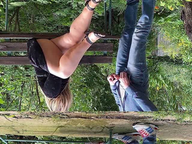 Stripteasing MILF babe touches herself in public outdoors