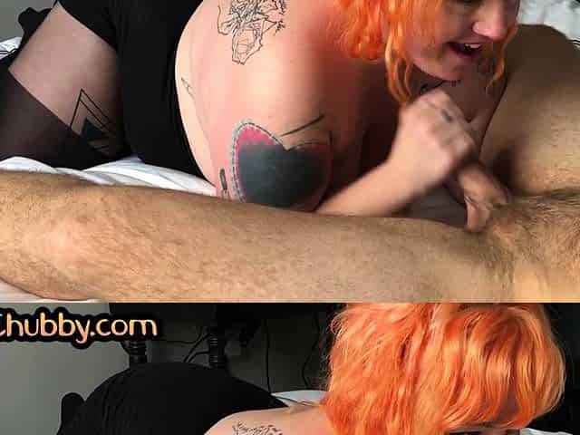 POV chubby MILF gives nice blowjob with her boyfriend