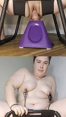 Bouncing on a Huge Dildo