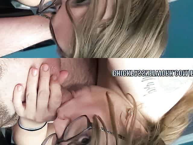 Chubby blonde Alexsis Sweet is going down on a stiff cock. Curvy MILF Alexsis Sweet wears her glasses while she sucks some dick