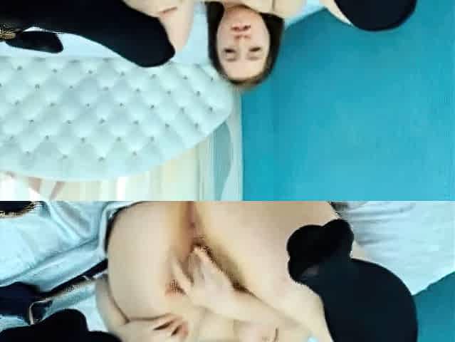 Horny teen girl masturbating her tight pussy