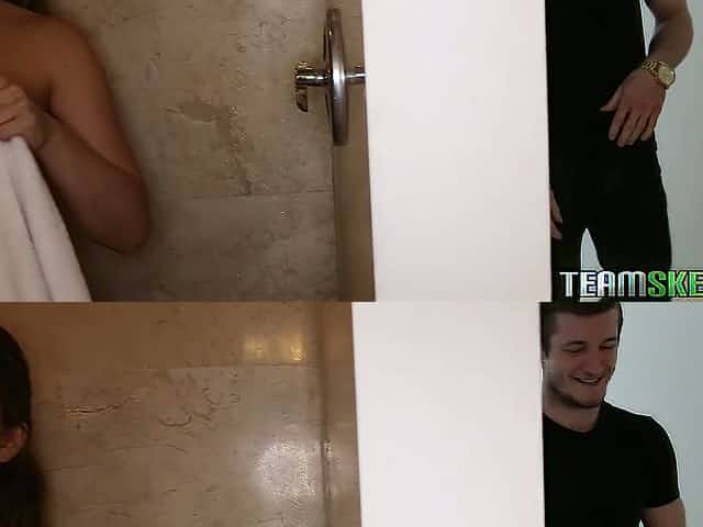 Slutty chubby chick Sarah Bella seduces stepbrother and his best friend