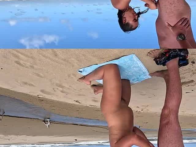 Doing a cum walk on the beach after sucking and jerking off jock