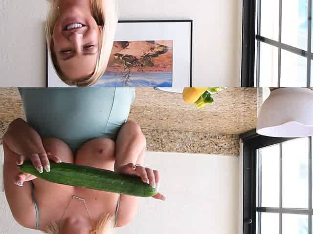 Blond plumper Alexsis Pleasant stuffs her snatch with fruit