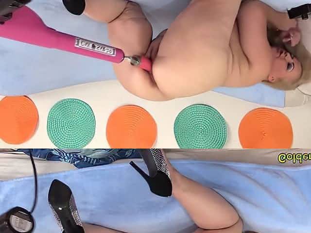 With Their Pussies Spread By Sex Toys They Scream With