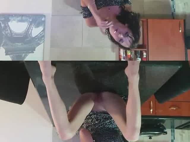Sexy dirty slut smoking cigarette and showing off her pussy and ass upskirt