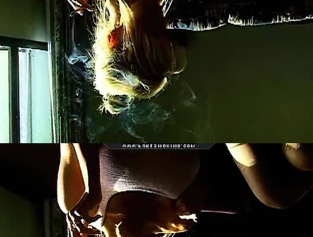 Kinky blonde slut smokes a cigarette and a cock with her talented snatch