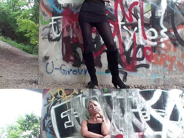 Brunette mature slut smoking a cigarette