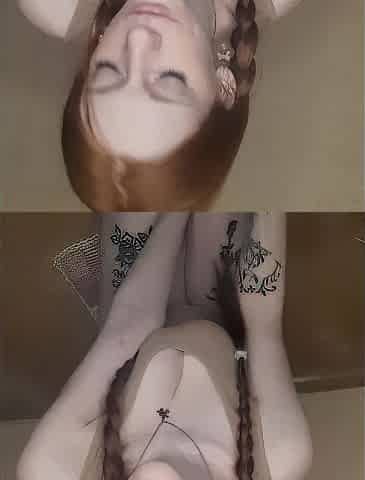 Hot redhead Lauretta smokes a cigarette and flaunts her nylon-covered feet