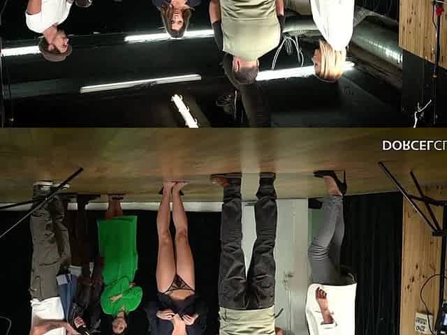 Claire Castel between 3 men