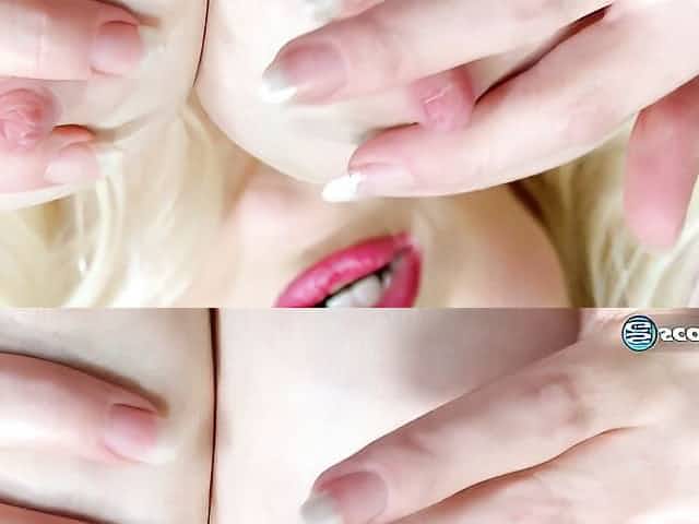 Stunning bald blonde Riley Nixon opens her little wet pussy