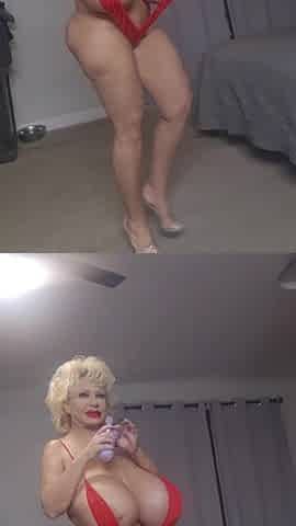 Giant Titted Bimbo in Red Monokini