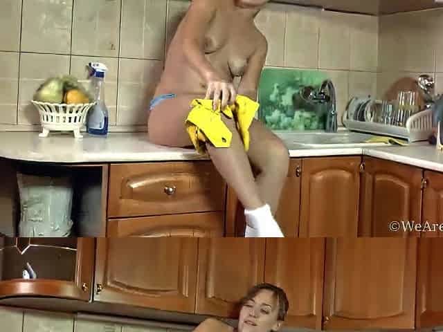 Inexperienced wife Mirsur cleans the house in the nude