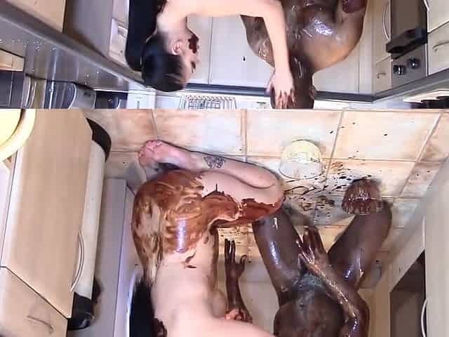 Messy Chocolate Sploshing And Shower Cleanup