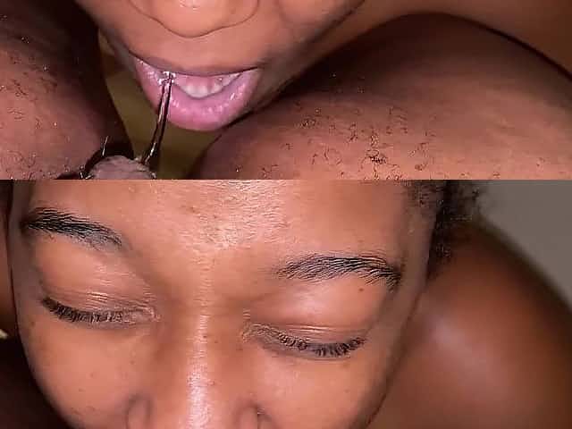 Black dude munches stretched pussy lips and tickles clit with tongue tip