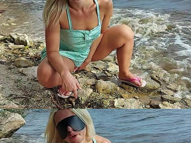 Шлюха любит трахать жопу игрушкой на море