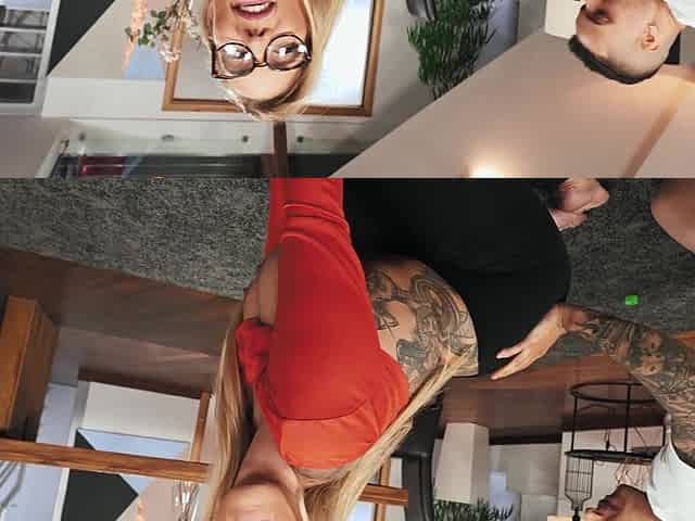 Tattooed blonde with big tits sucking a hard dick - Mia Blow