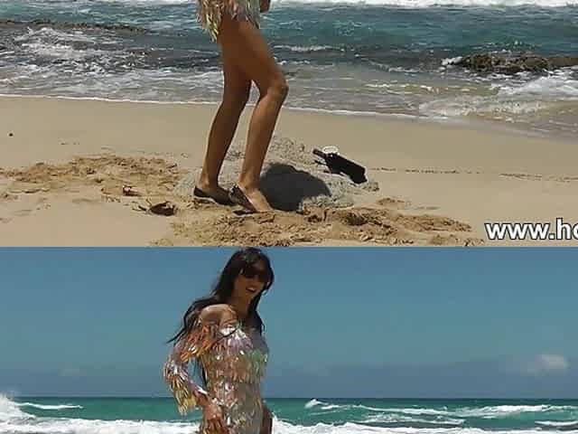 I filmed a curvy girl changing clothes and doing exercises on the beach.